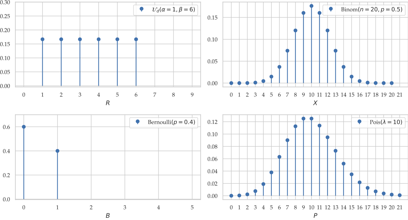 This notebook contains all the code examples from Section 2.3 Inventory of discrete distributions of the No Bullshit Guide to Statistics.